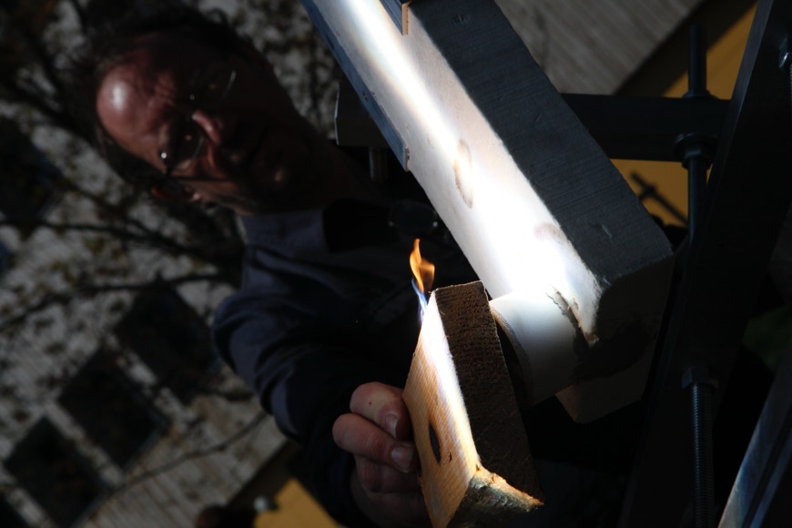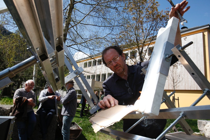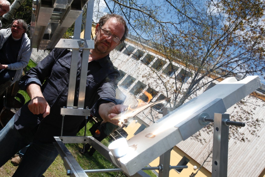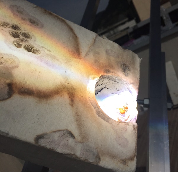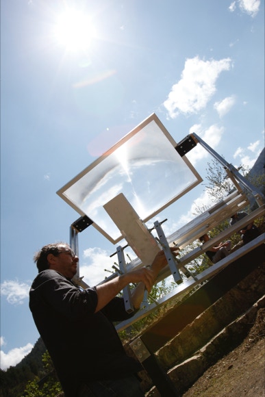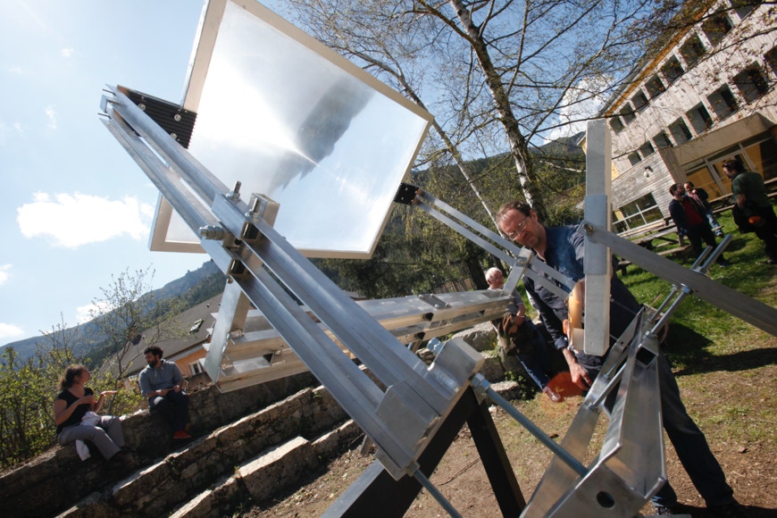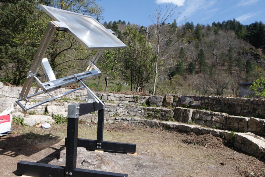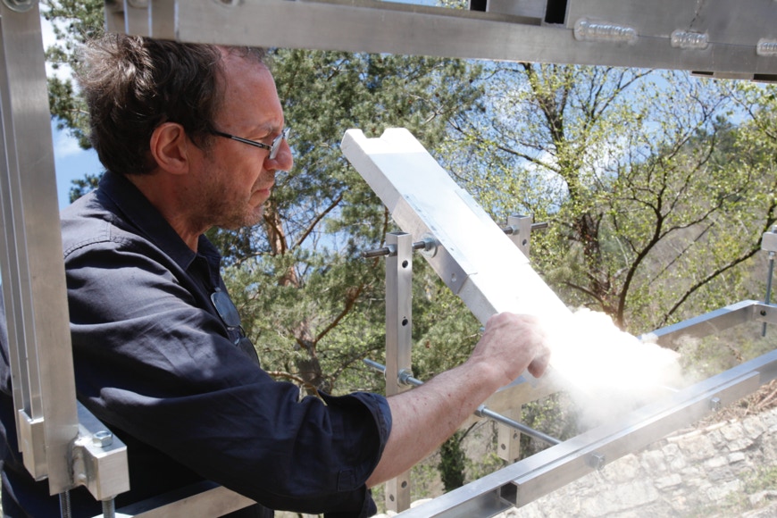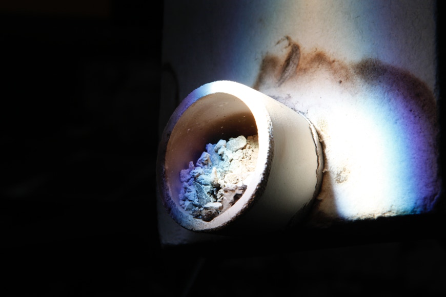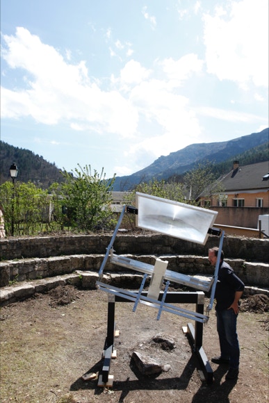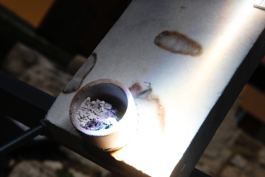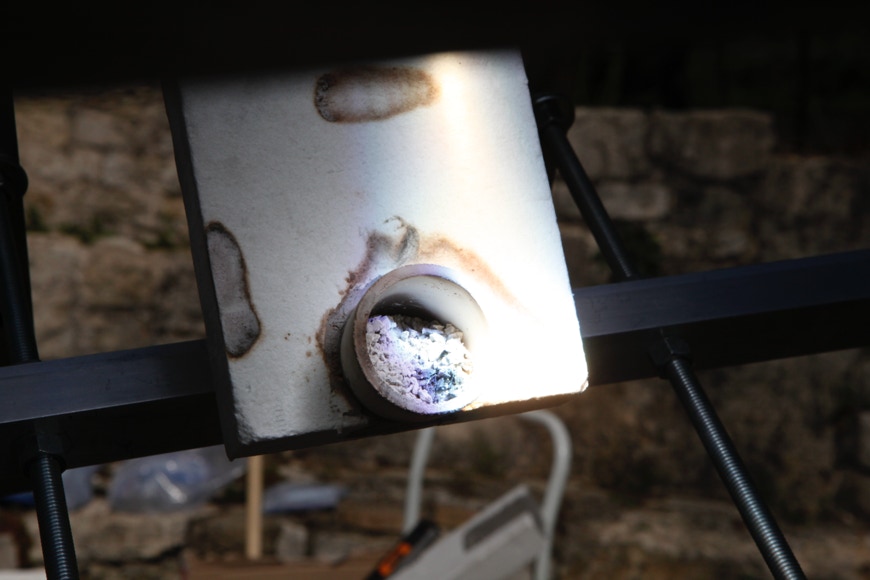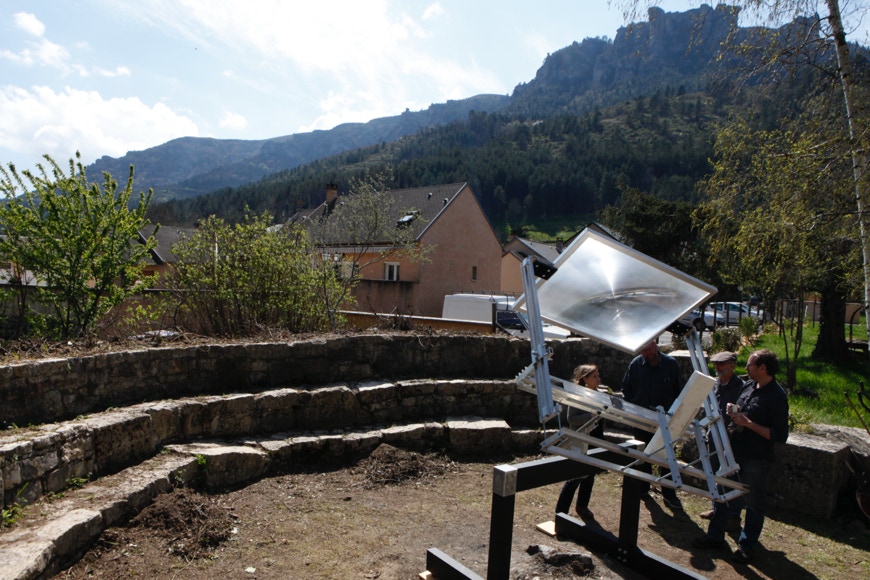 de calcaire et de granite avant d’être soumises au feu du concentrateur solaire.