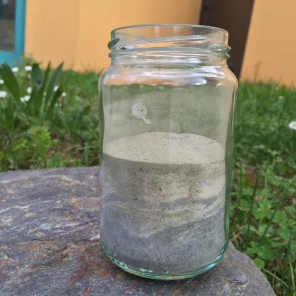 Prélèvement de l’eau de la Source du Pêcher, dans laquelle seront mises à macérer les poudres de schiste,